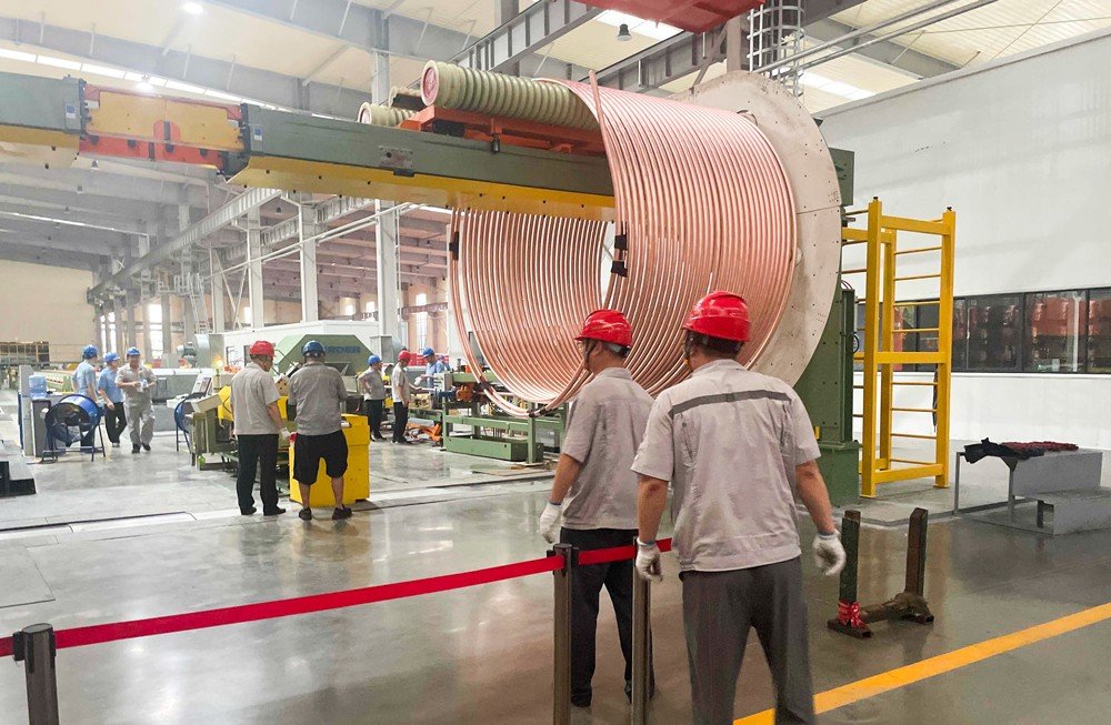 20:55,直管生产班组长于有龙凭据客户要求开始进行Φ54×2直管的工艺试验,精度方面必须先确保壁厚2mm不可泛起负公差,再研究控制正公差;频频试制下来,于班长最终定好拉制工艺,与直拉机师傅嘱咐妥当后,才和李祥鹏部长完成交接下班回家。李祥鹏部长、孙涛部长、杨书虎科长、高元阳科长、质检巡检员罗学迅轮流驻在直管生产线进行检验,把控精度公差,每10分钟做一次检测,确保生产出的铜管在客户要求的规模之内。大直管粗重,拉制起来劳动强度概略求条件高,四位直拉机员工师傅在高温下很快汗流浃背,身上的事情服被汗水浸透,被散热扇吹干了又湿、湿了又干,反重复复。李部长看在眼里、疼在心里,忍不住下手与员工师傅并肩一起干。